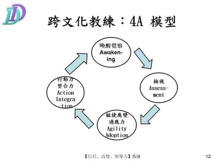 - 跨文化4A模型,Awakening、Assessment、Agility與Action。